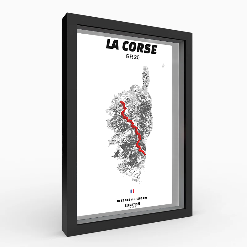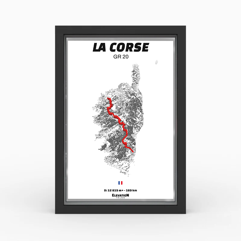 Faites de votre GR20 un souvenir d’exception avec notre affiche 3D haut de gamme. Passez commande aujourd’hui et recevez un cadre conçu avec soin, qui mettra en valeur votre exploit sportif et votre passion pour la course à pied.